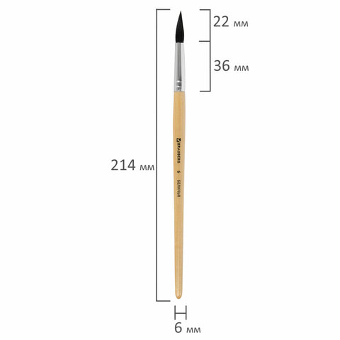 Кисть BRAUBERG, белка, круглая, № 6, 200183