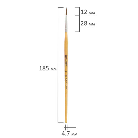 Кисть BRAUBERG № 2 подходит для работы с акварелью, гуашью, тушью, а также для прорисовывания различных деталей рисунка. Снабжена защитным пластиковым колпачком.