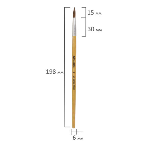 Кисть BRAUBERG № 4 подходит для работы с акварелью, гуашью, тушью, а также для прорисовывания различных деталей рисунка. Снабжена защитным пластиковым колпачком.