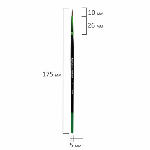 Кисть из ворса пони № 1, BRAUBERG PREMIUM, 200980