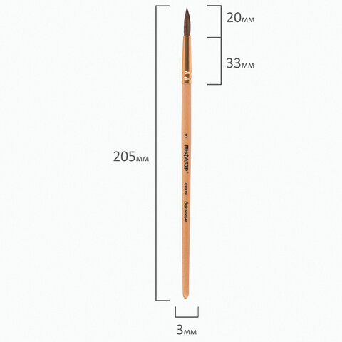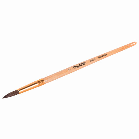 Кисть ПИФАГОР, БЕЛКА, круглая, № 5, деревянная лакированная ручка, с колпачком, 200819