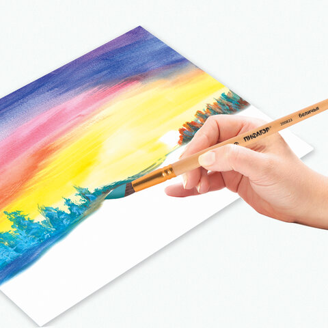 Кисть ПИФАГОР № 9 подходит для работы с акварелью, гуашью, тушью, а также для прорисовывания различных деталей рисунка. Снабжена защитным пластиковым колпачком.
