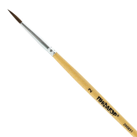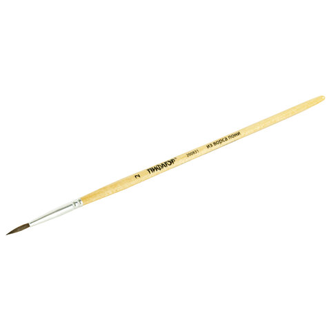 Кисть ПИФАГОР, ПОНИ, круглая, № 2, деревянная лакированная ручка, с колпачком, 200831