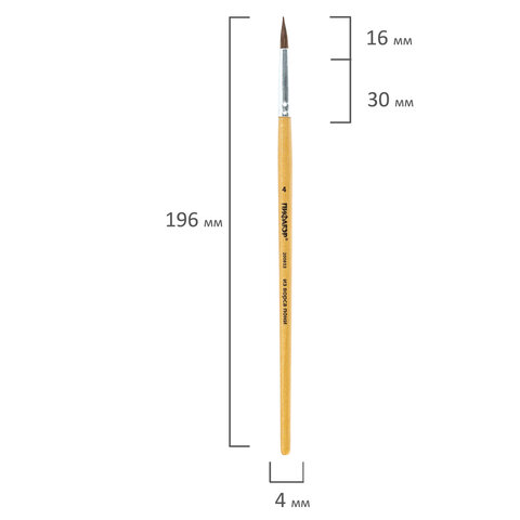 Кисть ПИФАГОР, ПОНИ, круглая, № 4, деревянная лакированная ручка, с колпачком, 200833