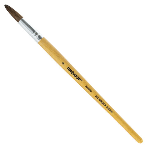 Кисть ПИФАГОР, ПОНИ, круглая, № 9, деревянная лакированная ручка, колпачок, пакет с подвесом, 200838