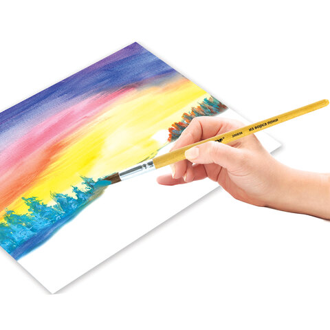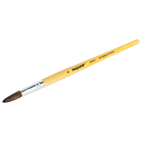 Кисть ПИФАГОР № 9 подходит для работы с акварелью, гуашью, тушью, а также для прорисовывания различных деталей рисунка. Снабжена защитным пластиковым колпачком.