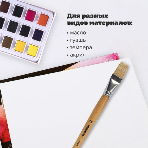 Кисть ПИФАГОР № 18 подходит для работы с гуашью, акрилом, маслом, темперой, а также для прорисовывания различных деталей рисунка.