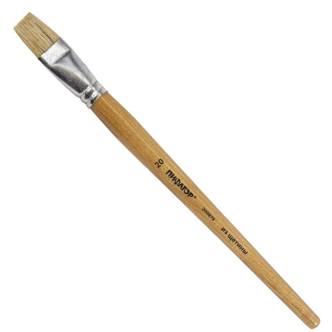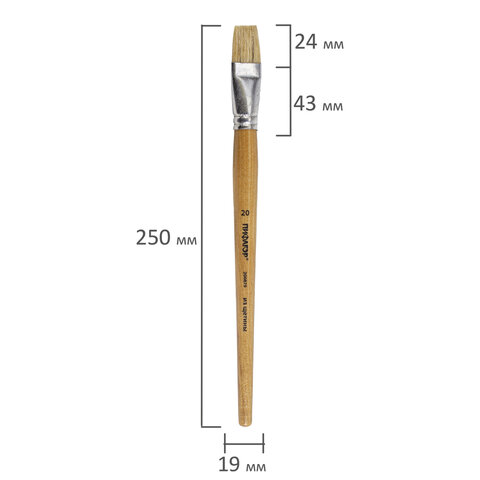 Кисть ПИФАГОР, ЩЕТИНА, плоская, № 20, деревянная лакированная ручка, пакет с подвесом, 200879