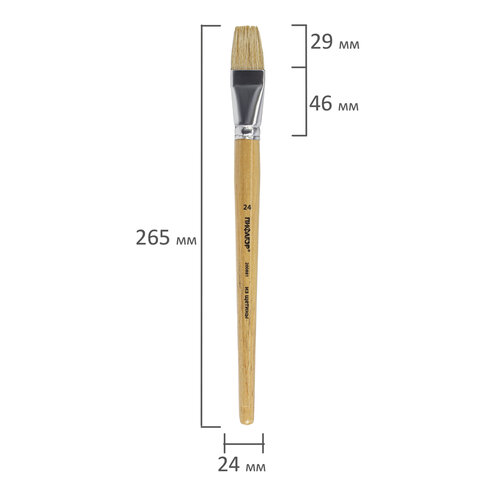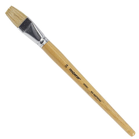 Кисть ПИФАГОР, ЩЕТИНА, плоская, № 24, деревянная лакированная ручка, пакет с подвесом, 200881