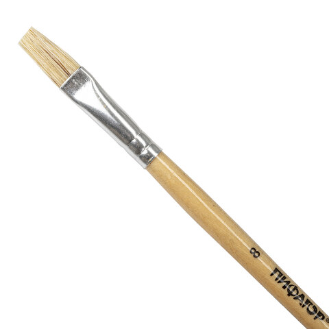 Кисть ПИФАГОР, ЩЕТИНА, плоская, № 8, деревянная лакированная ручка, пакет с подвесом, 200873
