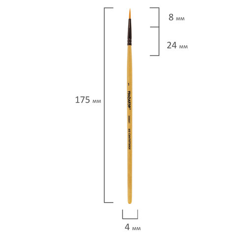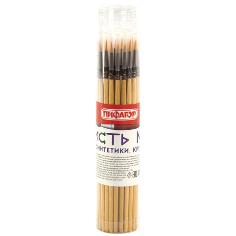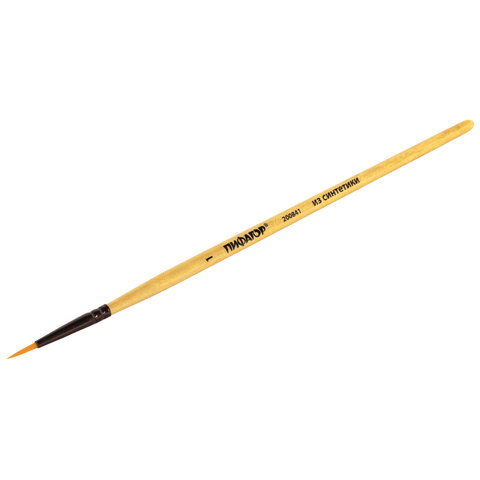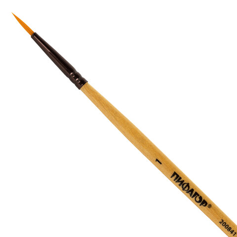 Кисть ПИФАГОР, СИНТЕТИКА, круглая, № 1, деревянная лакированная ручка, с колпачком, 200841