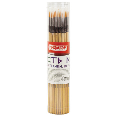 Кисть ПИФАГОР, СИНТЕТИКА, круглая, № 2, деревянная лакированная ручка, с колпачком, 200842