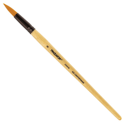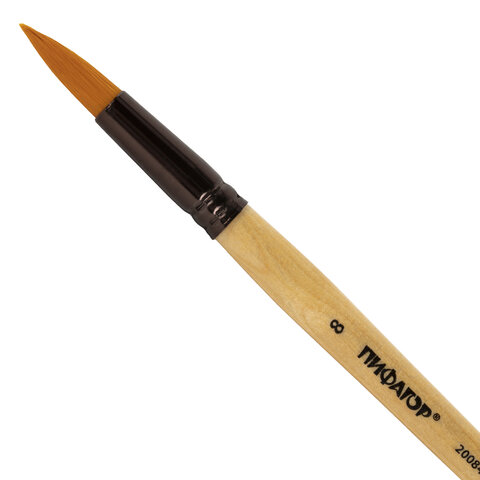 Кисть ПИФАГОР, СИНТЕТИКА, круглая, № 8, деревянная лакированная ручка, с колпачком, пакет с подвесом, 200848