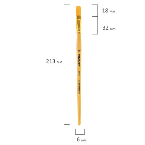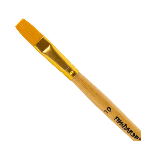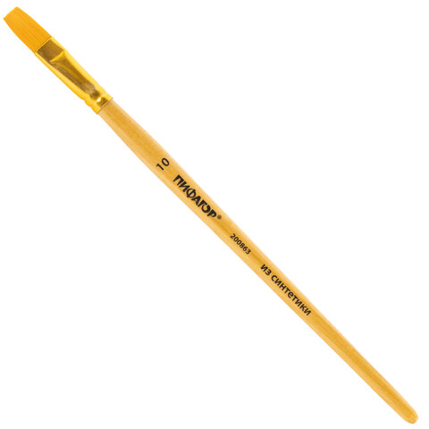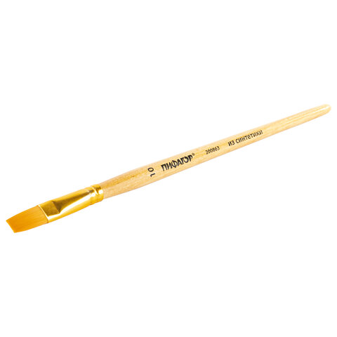 Кисть ПИФАГОР, СИНТЕТИКА, плоская, № 10, деревянная лакированная ручка, пакет с подвесом, 200863