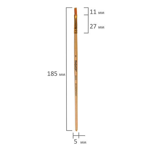 Кисть ПИФАГОР, СИНТЕТИКА, плоская, № 3, деревянная лакированная ручка, 200856