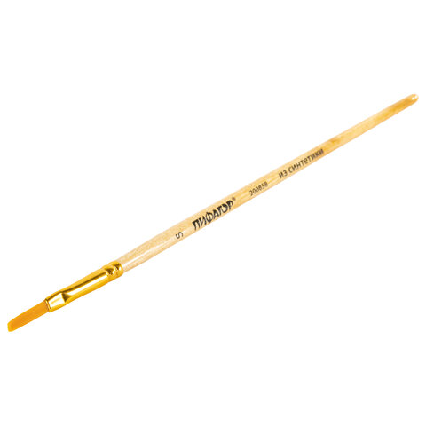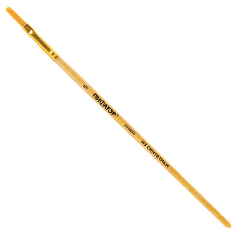 Кисть ПИФАГОР, СИНТЕТИКА, плоская, № 5, деревянная лакированная ручка, 200858