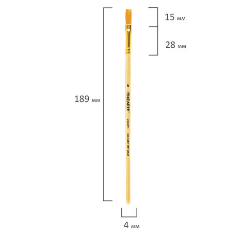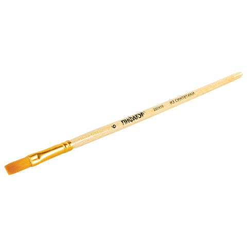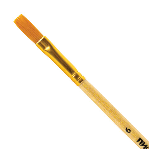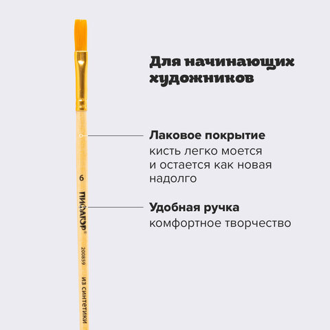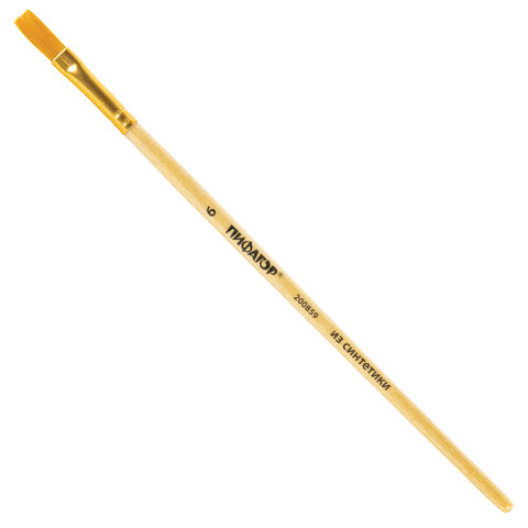 Кисть ПИФАГОР, СИНТЕТИКА, плоская, № 6, деревянная лакированная ручка, пакет с подвесом, 200859
