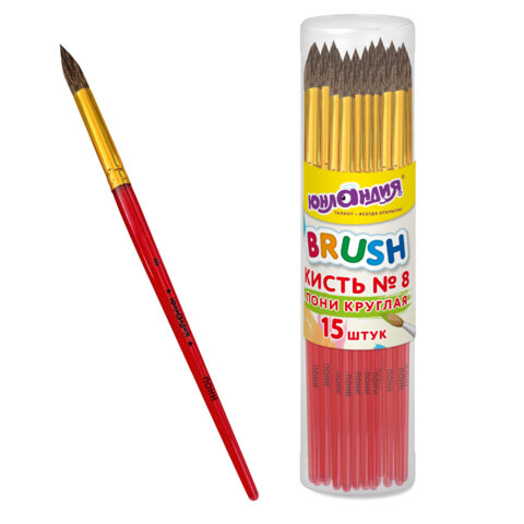 Кисть ПОНИ, круглая, № 8, цветная ручка, ЮНЛАНДИЯ, 201066