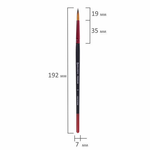 Кисть синтетика, круглая № 5, BRAUBERG PREMIUM, 201004