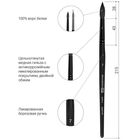 Кисть художественная проф. BRAUBERG ART CLASSIC, белка, круглая, № 7, 200913