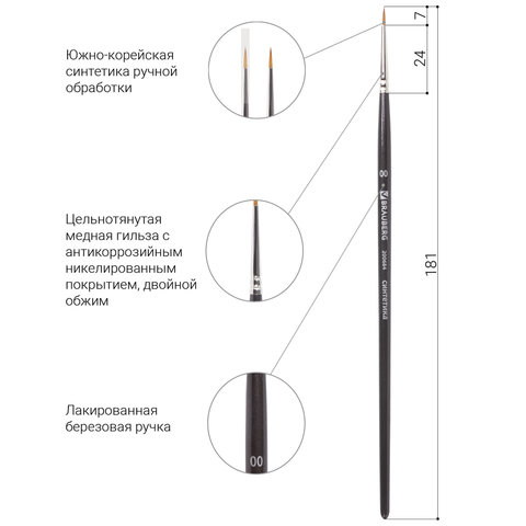Художественная профессиональная синтетическая кисть BRAUBERG ART "CLASSIC" № 00 предназначена для работы с акварелью, с масляными красками и другими материалами для живописи.