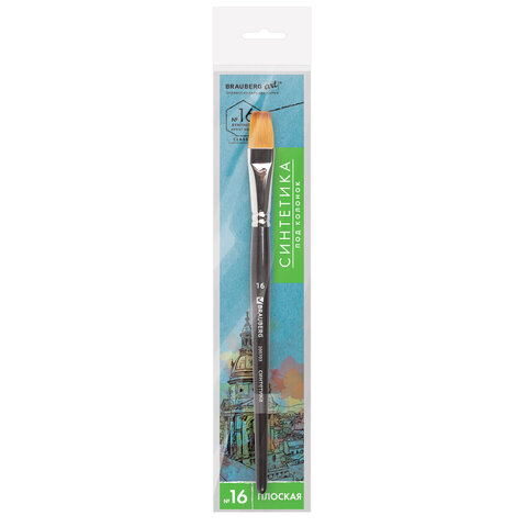 Кисть художественная профессиональная BRAUBERG ART CLASSIC, синтетика мягкая под колонок, плоская, № 16, короткая ручка, 200703