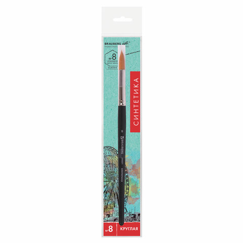 Художественная профессиональная синтетическая кисть BRAUBERG ART "CLASSIC" № 8 предназначена для работ густыми красками: гуашь, акрил, масло, темпера. Идеальна для водорастворимых масляных красок.