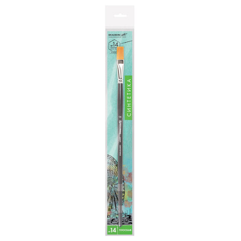 Кисть художественная проф. BRAUBERG ART CLASSIC, синтетика жесткая, плоская, № 14, длинная ручка, 200669