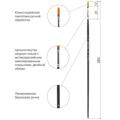 Художественная профессиональная синтетическая кисть BRAUBERG ART "CLASSIC" № 4 предназначена для работ густыми красками: гуашь, акрил, масло, темпера. Идеальна для водорастворимых масляных красок.