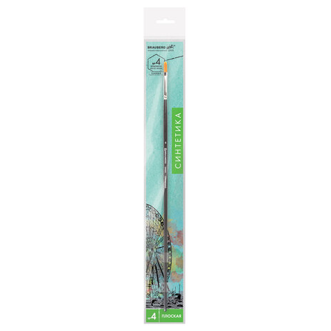 Кисть художественная проф. BRAUBERG ART CLASSIC, синтетика жесткая, плоская, № 4, длинная ручка, 200664