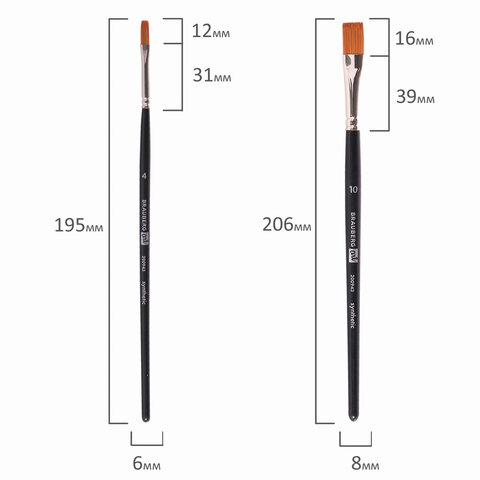 Номер кисти круглая № 1, 3 и плоская № 4, 10