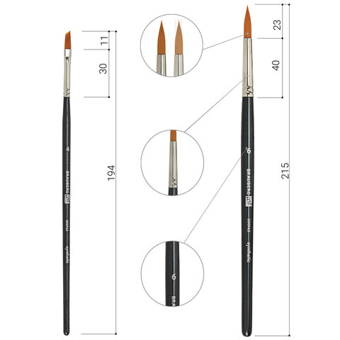 Номер кисти овальная № 2; веерная № 8; круглая № 4, 6, 8; скошенная № 4, 8; плоская № 6, 10, 14; сабля № 12; зубчатая № 10
