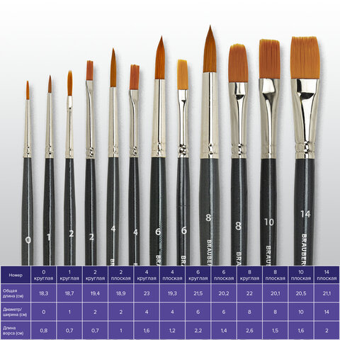 Номер кисти круглая № 0, 1, 2, 4, 6, 8; плоская № 2, 4, 6, 8, 10, 14
