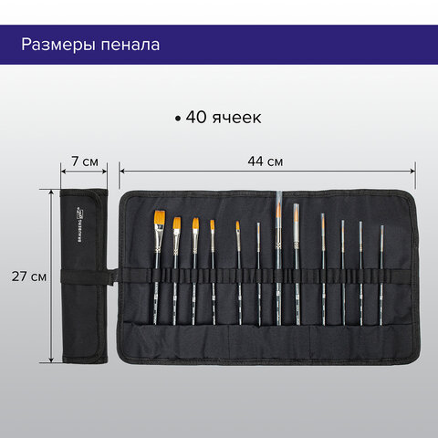 Кисти художественные набор 12 шт., в черной скрутке, синтетика, BRAUBERG ART CLASSIC, № 0-14, 200969