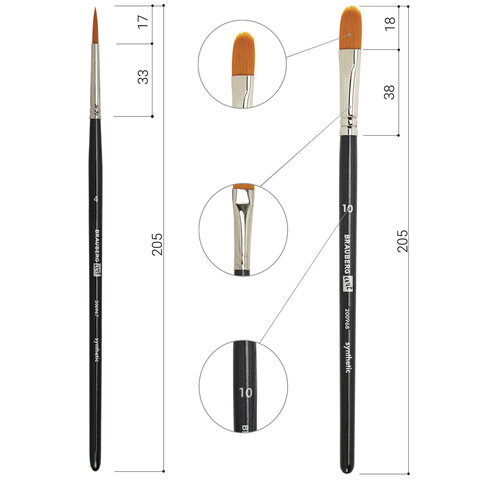 Номер кисти круглая № 1, 2, 4; плоская № 4, 8, 14; скошенная № 8; овальная № 6, 10, 14; веерная № 8; лайнер № 1