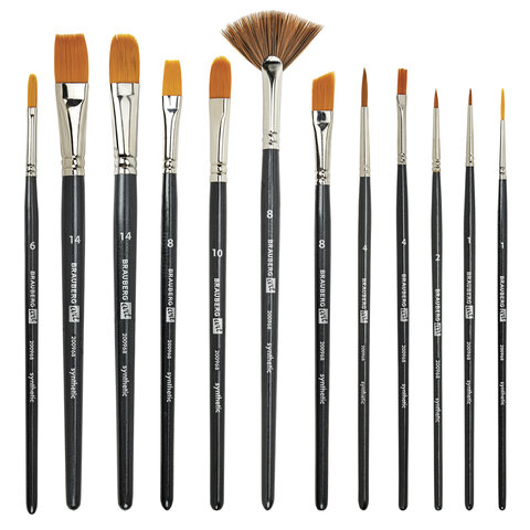 Кисти художественные набор 12 шт., в черной скрутке, синтетика, BRAUBERG ART CLASSIC, № 1-14 + веерная, 200968