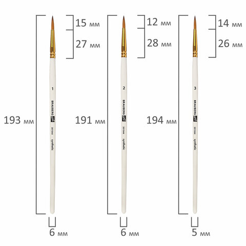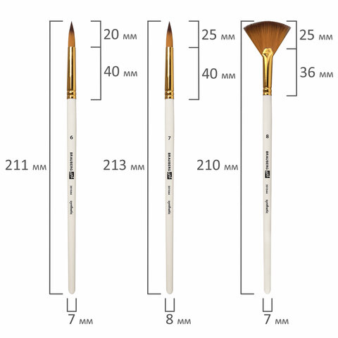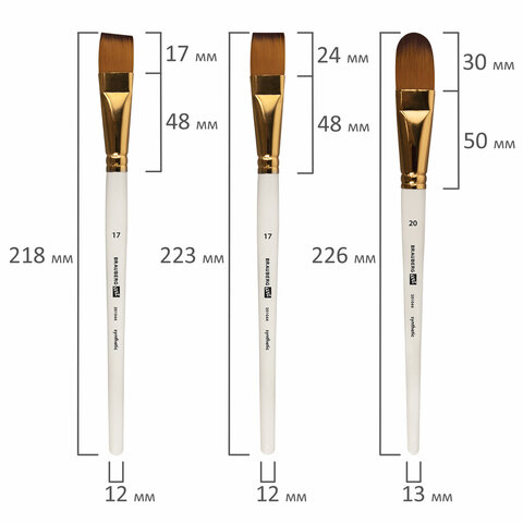 Номер кисти скошенные - № 11, № 17. Плоские-№11, № 17. Веерная- №8. Круглые- № 1, № 2, № 3, № 6, № 7. Овальные- № 13, № 20.
