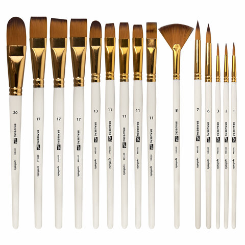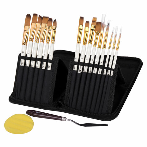 Кисти художественные набор 15 шт. + мастихин в пенале, белые, синтетика, BRAUBERG ART DEBUT, 201044
