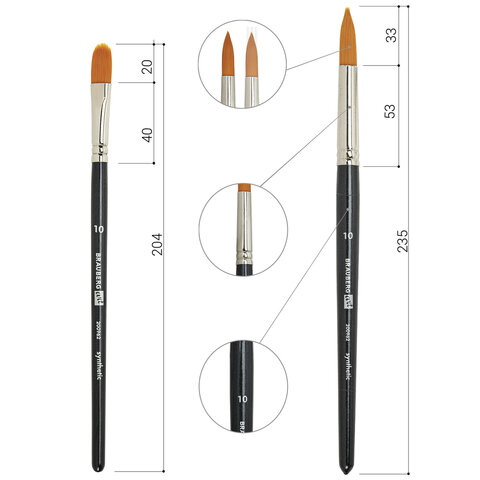 Номер кисти овальная № 10, 18, 22; веерная № 4; плоская № 16, 24; круглая № 8, 10; скошенная № 6, 12, 20, 24; лайнер №1, 2, 5