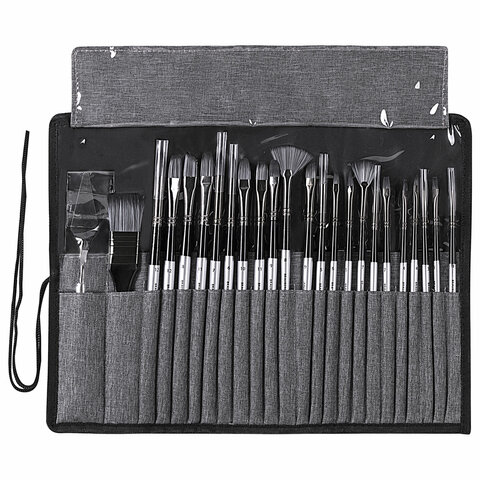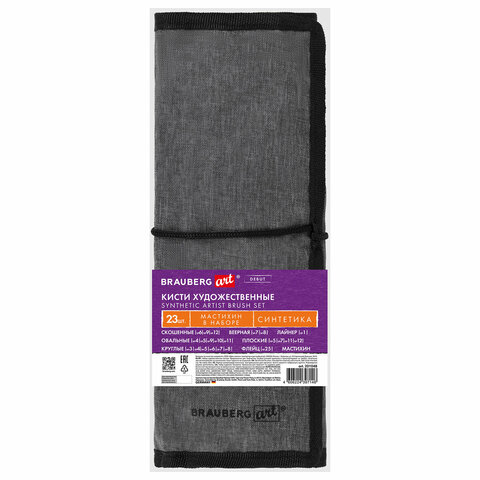 Кисти художественные набор 23 шт., синтетика с мастихином, в пенале, BRAUBERG ART DEBUT, 201048