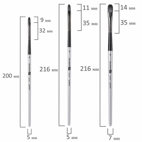 Номер кисти скошенные- № 6, 9, 12. Веерная - № 7, 8. Лайнер - № 1. Овальные - № 4, 5,9, 10, 11. Флейц - № 25. Плоские - № 5, 7, 11, 12. Круглые - № 3, 4, 5, 6, 7, 8