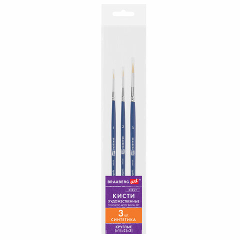 Кисти художественные набор 3 шт., синтетика (круглые № 1, 2,3), BRAUBERG ART DEBUT, 201041