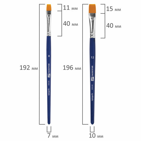 Кисти художественные набор 4 шт., синтетика (плоские № 3, 6, 8, 12), BRAUBERG ART DEBUT, 201033