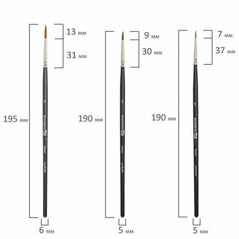 Номер кисти круглая № 1, 2, 3; плоская № 6, 12