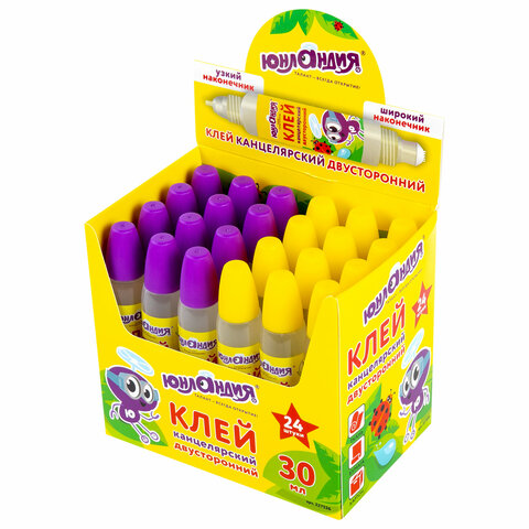 Клей канцелярский ЮНЛАНДИЯ с двусторонним аппликатором идеально склеивает бумагу, картон, фотографии. Незаменим в доме, школе и офисе.