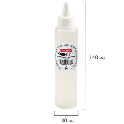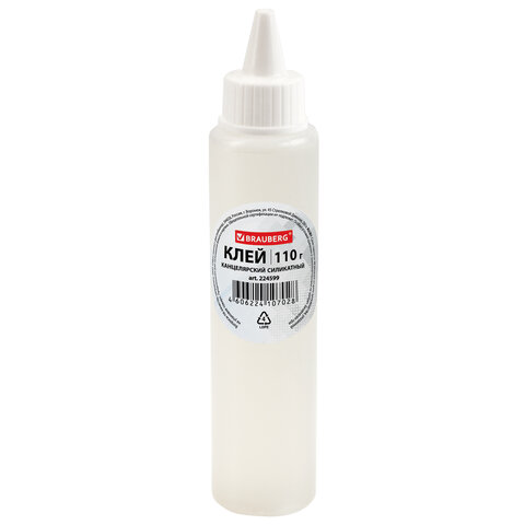 Клей канцелярский силикатный BRAUBERG "Classic" (для бумаги, картона) 110 г, 224599