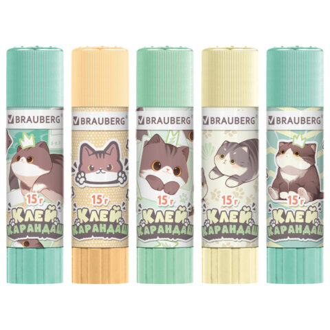 Клей-карандаш 15 г, кросс-серия "МИЛЫЕ КОТЫ", ассорти, BRAUBERG, 273228