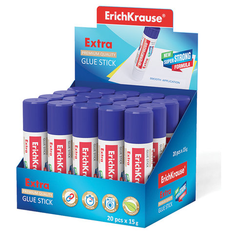 Клей-карандаш Extra c новой суперсильной формулой на PVP-основе с экономичным расходом, максимально быстрым и надежным склеиванием. Легко смывается водой. Не токсичен. Не содержит растворителя. Морозостоек. Подходит для бумаги, картона и ткани.