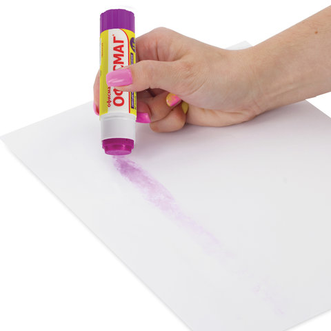 Обесцвечивающийся клей-карандаш ОФИСМАГ идеально подходит для аккуратного нанесения на склеиваемую поверхность. Идеально подходит для офиса, дома и школы.