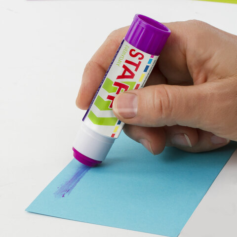 Обесцвечивающийся клей-карандаш STAFF помогает аккуратно и равномерно нанести клеевой слой на поверхность.